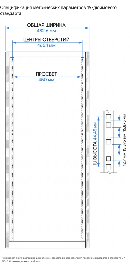 Фундаментальные метрические спецификации, заложенные в EIA-310-E, включают в себя: