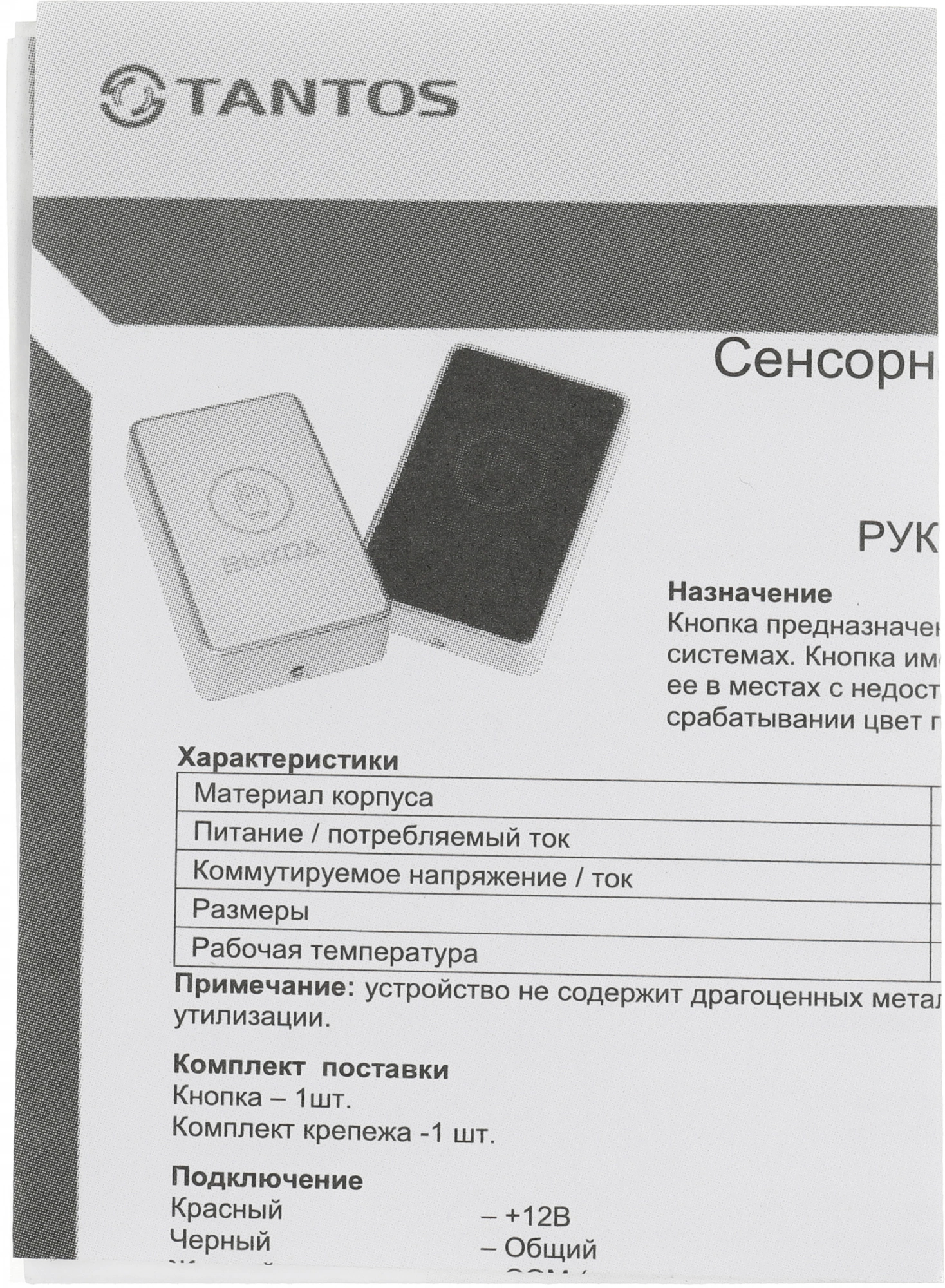 Кнопка выхода Tantos TS-Magic, 00-00016850