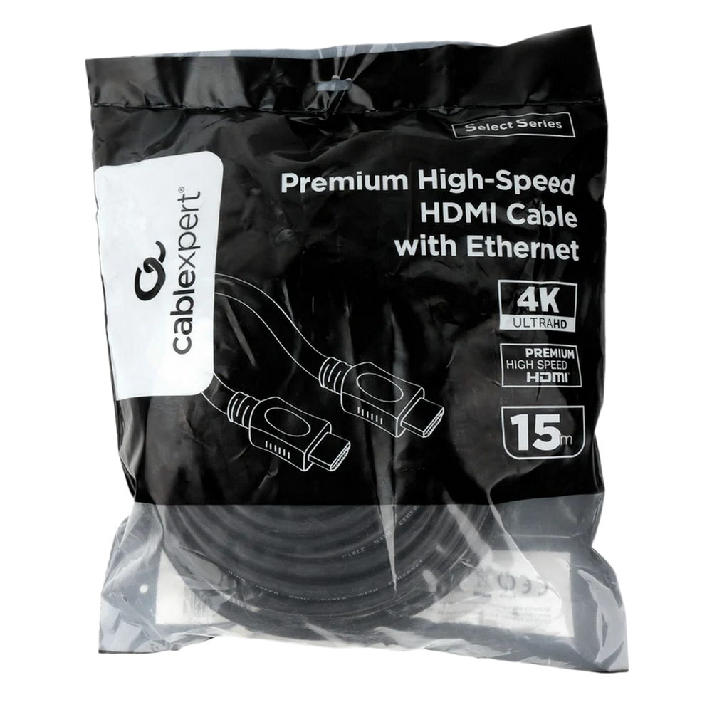 Видео кабель Cablexpert, HDMI (M) -> HDMI (M), HDMI 2.0, 15 м, цвет чёрный, CC-HDMI4L-15M