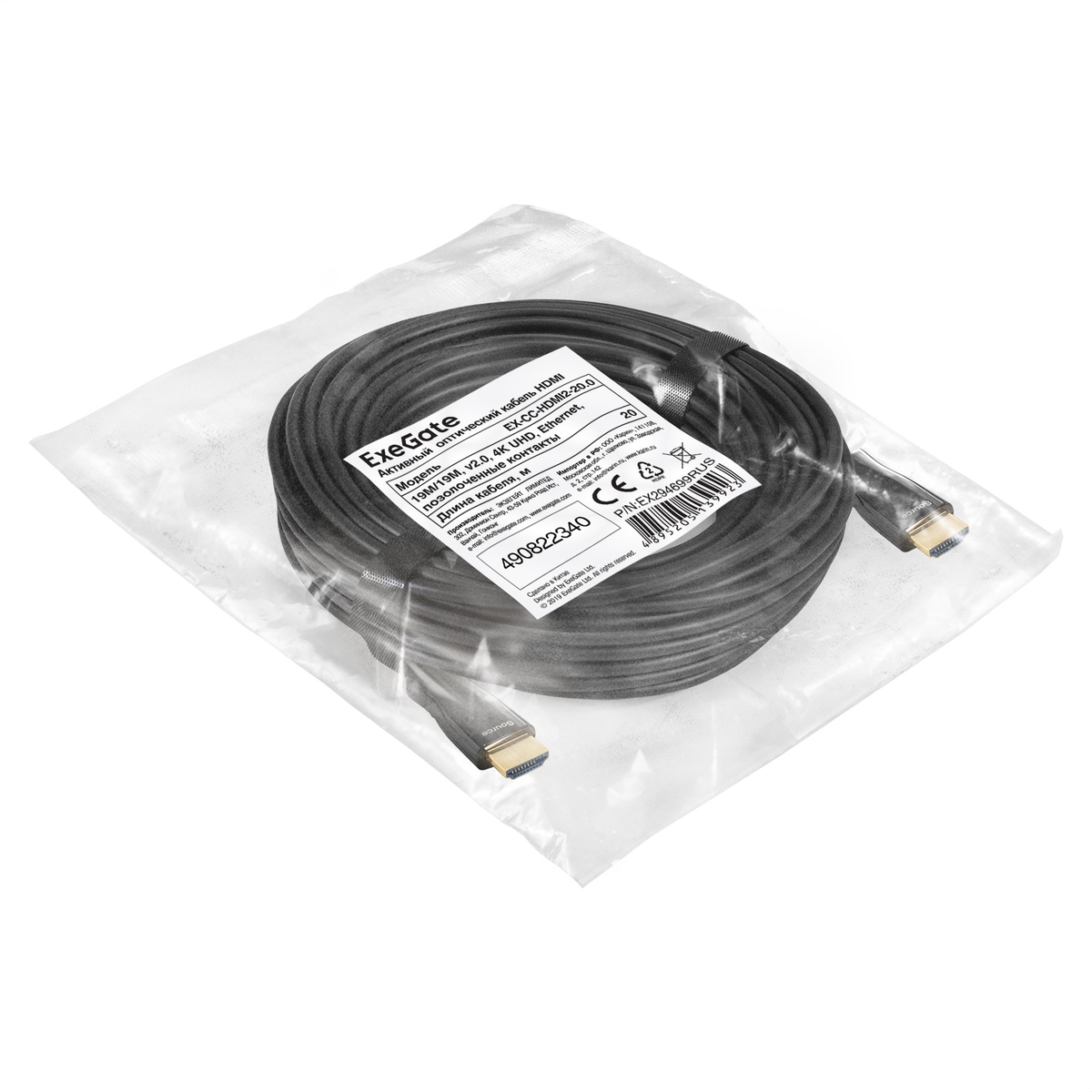 Видео кабель Exegate, HDMI (M) -> HDMI (M), HDMI 2.0, 20 м, EX294699RUS
