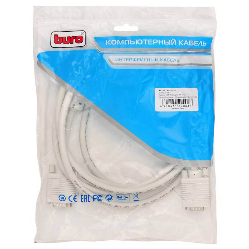 Выбрать товарыВидеокабель BURO, VGA (M) -> VGA (M), 3 м, цвет серый, CAB016S-10
