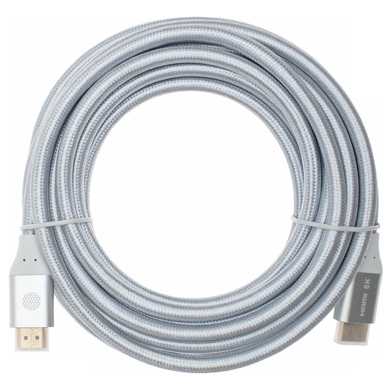Видео кабель CACTUS - CS-HDMI.2.1, HDMI (M) -> HDMI (M), HDMI 2.1, 4K@120Hz, 48 Гб/с, 5 м, цвет серебристый, CS-HDMI.2.1-5