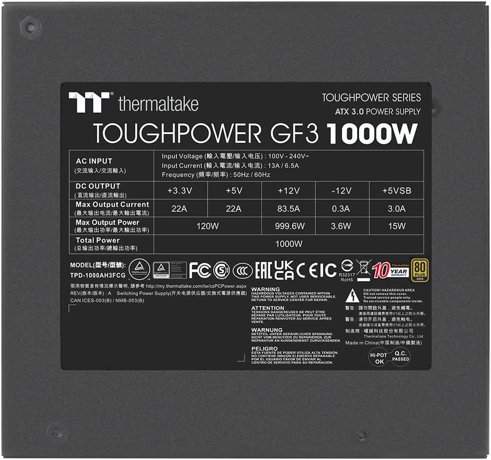 Блок питания для компьютера Thermaltake - Toughpower GF3 Gen.5, ATX, 80 PLUS Gold, 1000 Вт, PS-TPD-1000FNFAGE-4