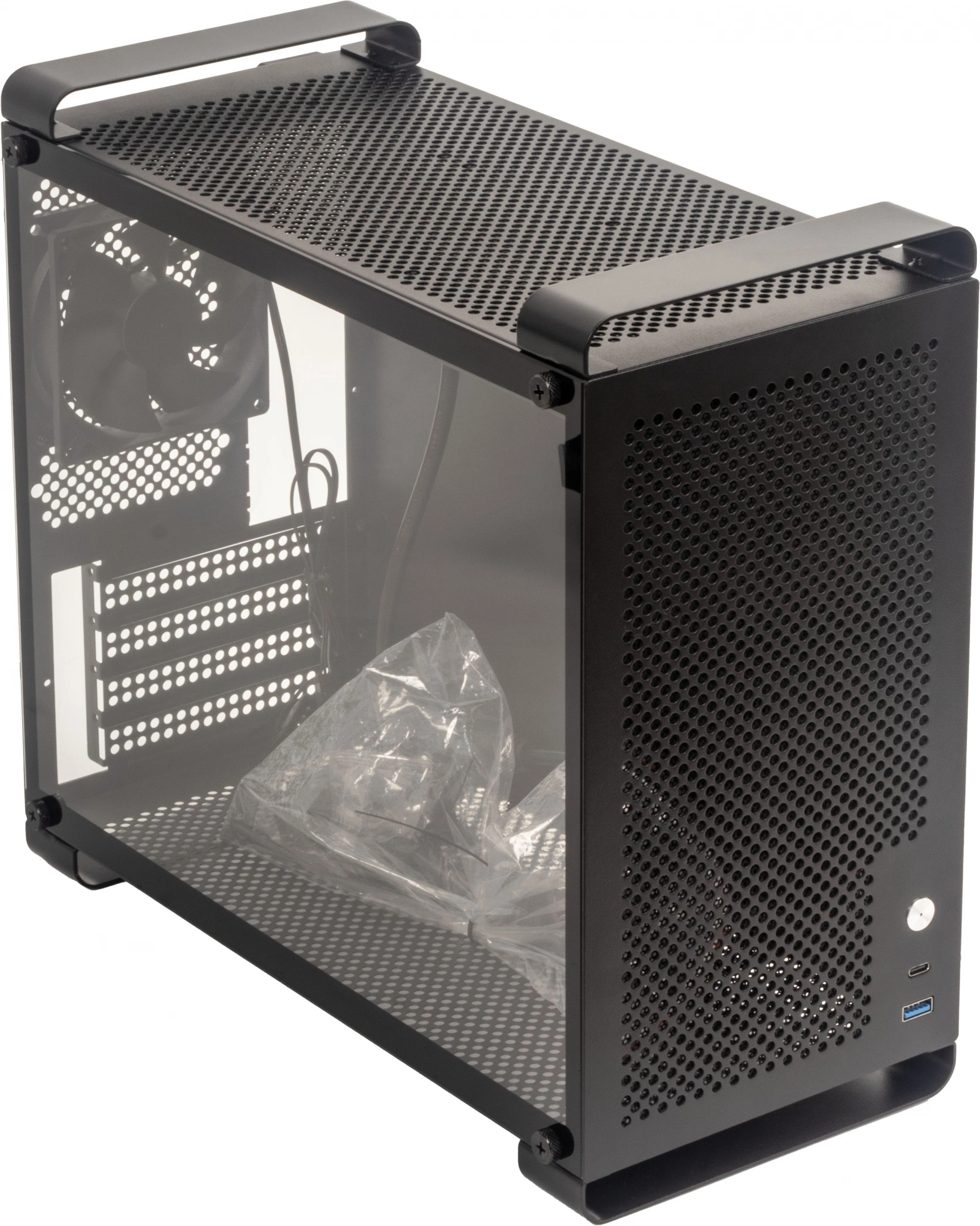 Порадовало наличие сетчатой передней панели, помогающей вентиляции. Установка блока питания и плат прошла без лишней возни. Металл не слишком тонкий, сборка смотрится достойно. Отличный вариант для офисного применения.