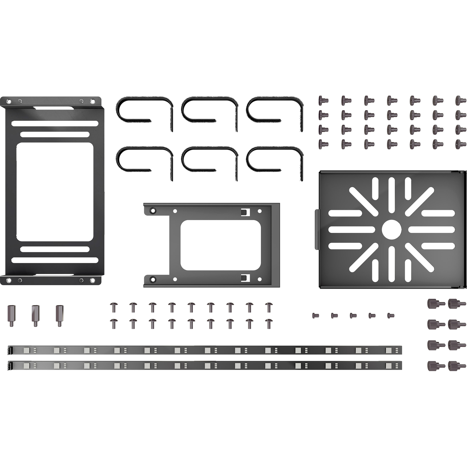 В шоу-руме корпус выглядит внушительно: строгий дизайн в чёрно-оранжевых тонах сочетается с улучшенным шумопоглощением. Многозональный радиатор и глушители обеспечивают тишину, а модульная внутренняя планировка позволяет гибко размещать накопители.