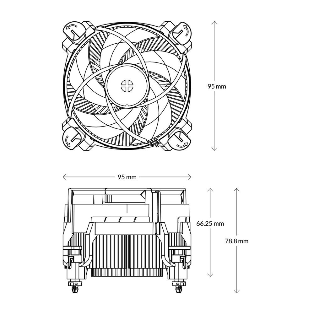 Компактный кулер, тихий, установка быстрая. Охлаждение уверенное, для офисных ПК подходит идеально. Металл прочный, вибраций нет.