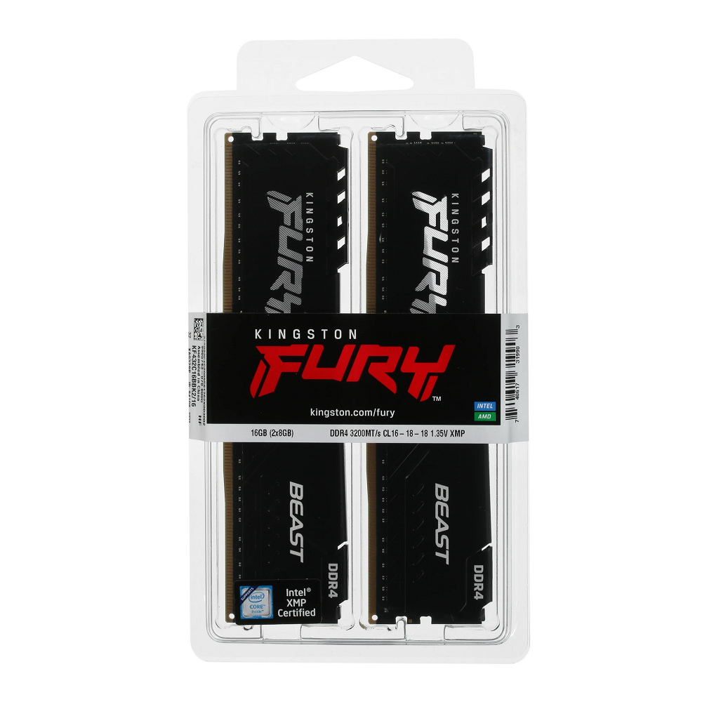 Комплект памяти Kingston - FURY Beast Black (Select Regions ONLY) 2х8 ГБ, DDR4 DIMM, non ECC, 3200 МГц, CL16, KF432C16BBK2/16WP