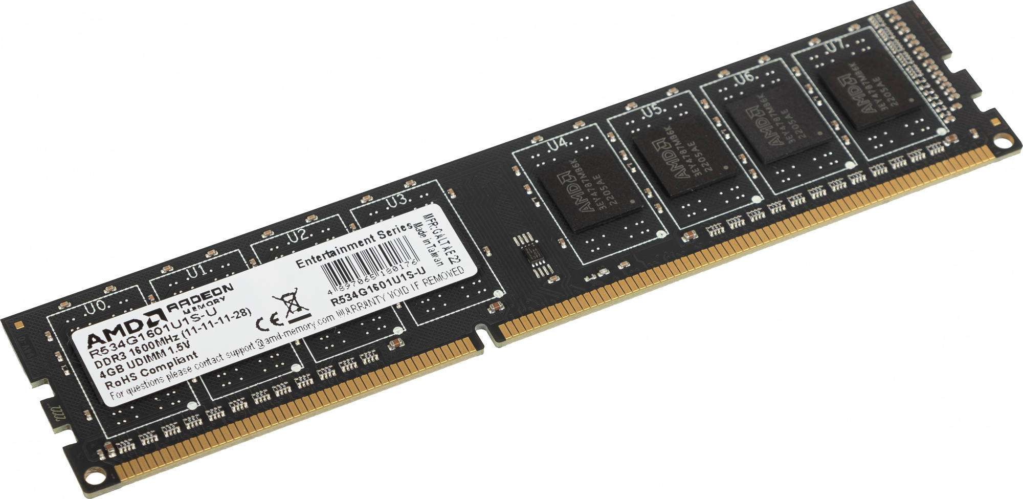 Модуль памяти AMD 4 ГБ, DDR3 DIMM, non ECC, 1600 МГц, CL11, 1.5V, R534G1601U1S-U