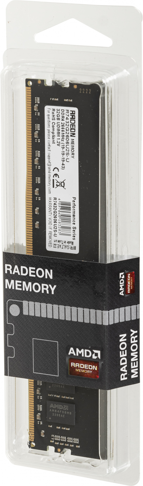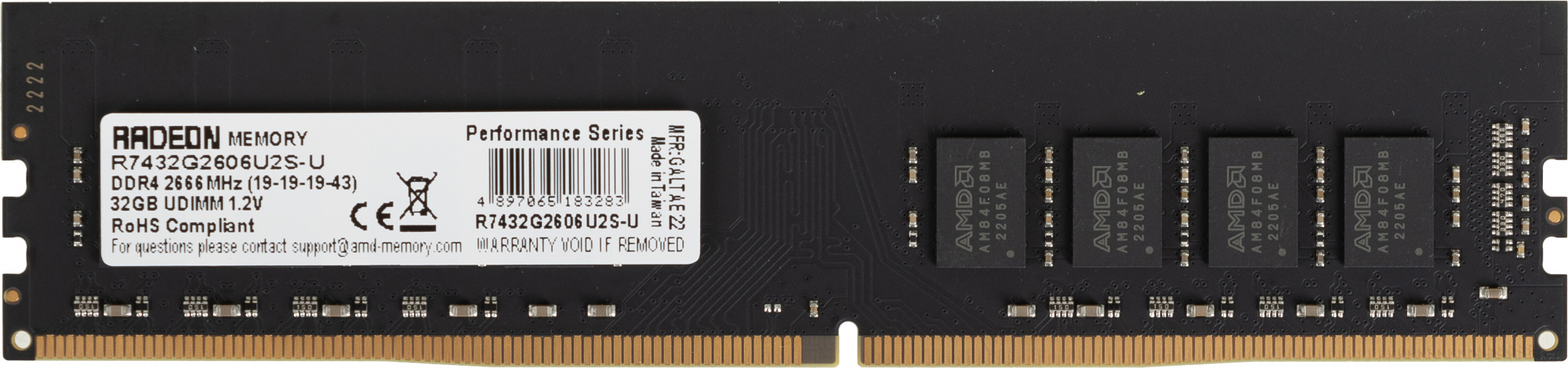 Модуль памяти AMD - Radeon R7 Performance Series 32 ГБ, DDR4 DIMM, non ECC, 2666 МГц, CL19, 1.2V, R7432G2606U2S-U