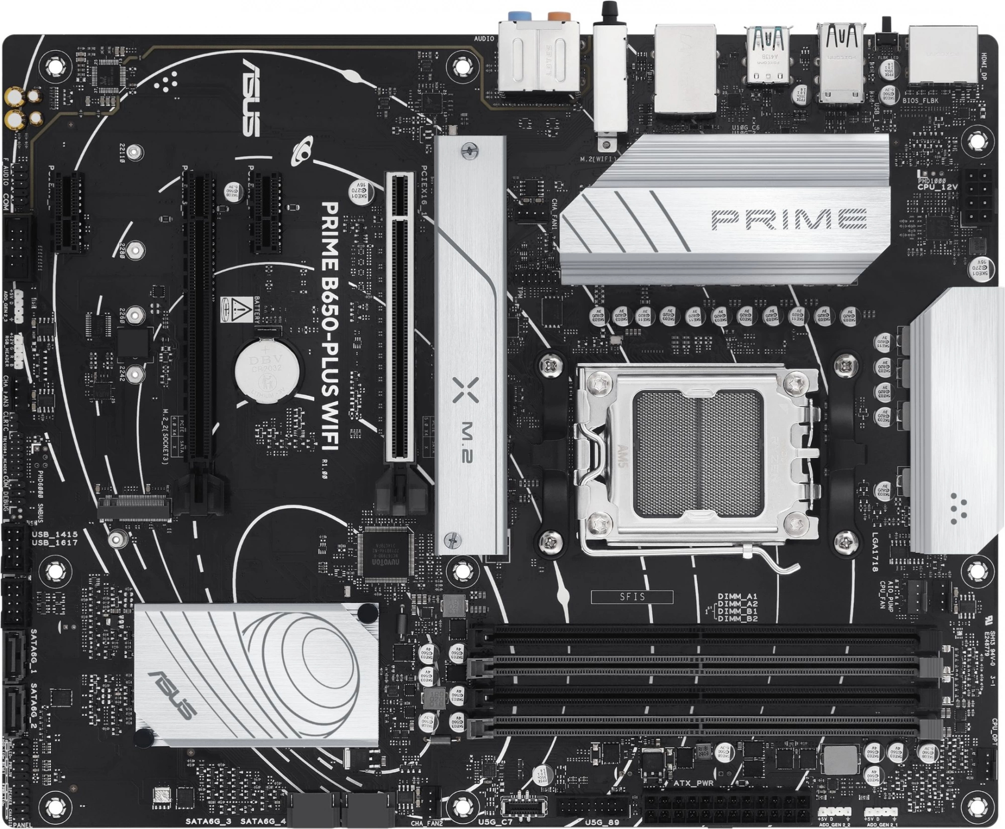 Материнская плата Asus - PRIME B650-PLUS WIFI, ATX, AMD B650, 1xAM5, 4xDDR5 до 192ГБ, audio, M.2, Wi-Fi, Bluetooth, HDMI, DP, 4xSATA, 2xUSB2.0, 2xUSB3.0, 3xUSB3.1, 1xUSB3.1 Type C, PRIME B650-PLUS WIFI