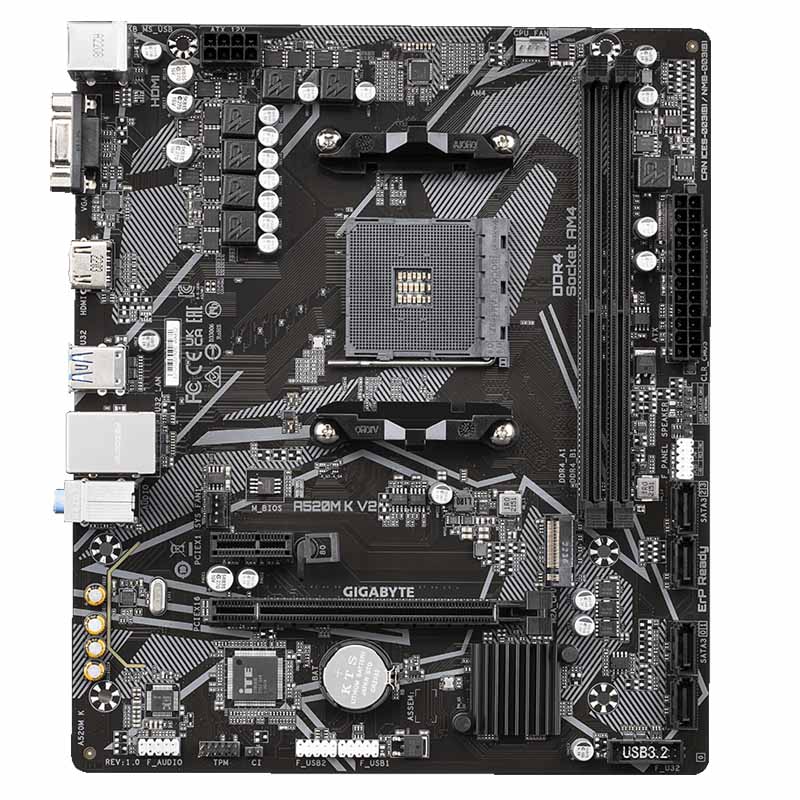 Материнская плата Gigabyte - A520M K V2, mATX, AMD A520, 1xAM4, 2xDDR4 до 64ГБ, 1x1GbE, audio, M.2, VGA, HDMI, 1xPS/2, 4xSATA, 2xUSB2.0, 4xUSB3.2, A520M K V2