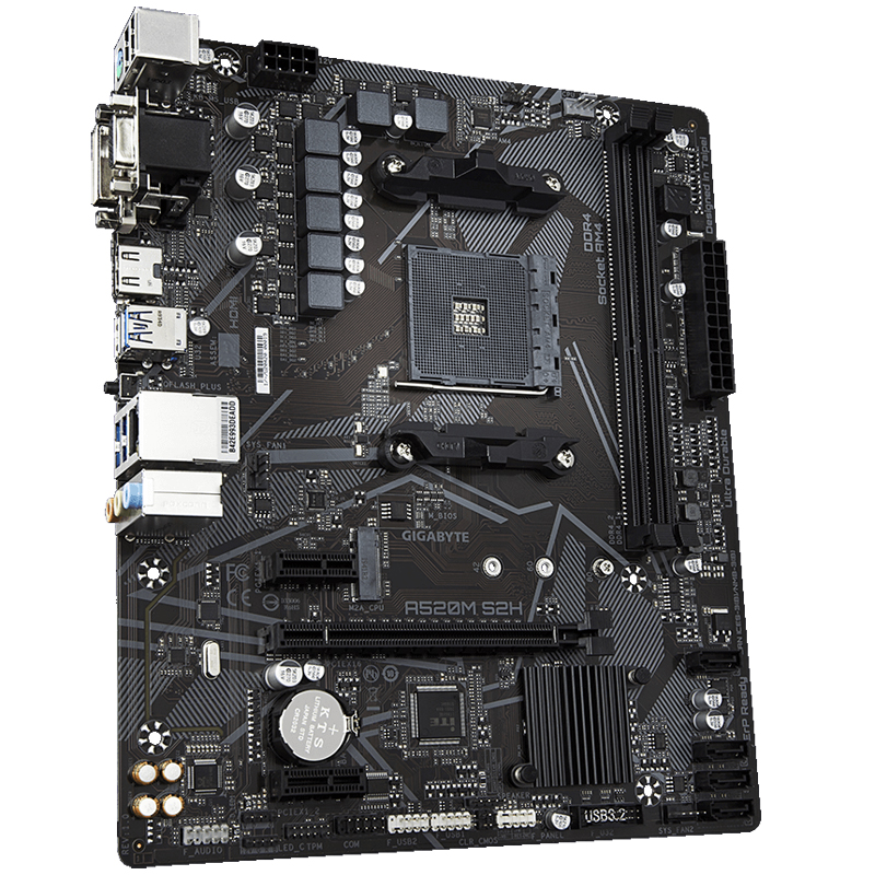 Материнская плата Gigabyte - A520M S2H, mATX, AMD A520, 1xAM4, 2xDDR4 до 64ГБ, 1x1GbE, audio, M.2, VGA, HDMI, DVI-D, 1xPS/2, 4xSATA, 2xUSB2.0, 4xUSB3.2, A520M S2H