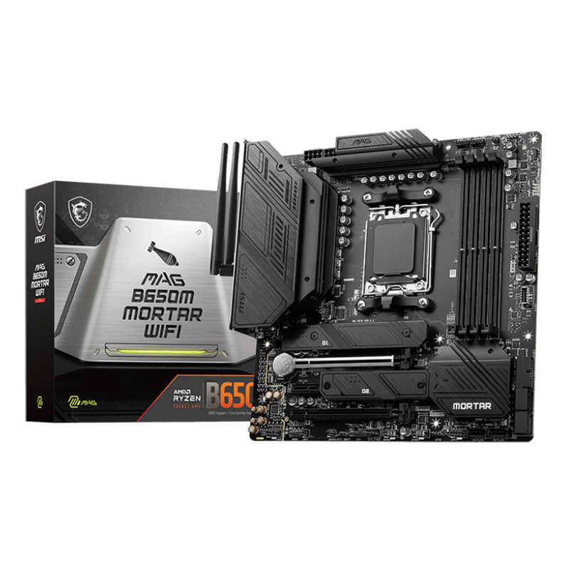 Материнская плата MSI - MAG B650M MORTAR WIFI, mATX, AMD B650, 1xAM5, 4xDDR5 до 128ГБ, 1x2.5GbE, audio, M.2, Wi-Fi, Bluetooth, HDMI, DP, 6xSATA, 7xUSB3.2, 1xUSB3.2 Type C, MAG B650M MORTAR WIFI
