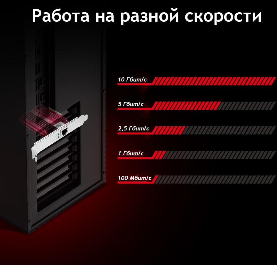 Прекрасна для апгрейда домашней NAS или рабочего ПК, если нужен 10Г. Скорость реально достигает 9+ Гбит. Легкая в настройке, драйверы на сайте TP-Link.
