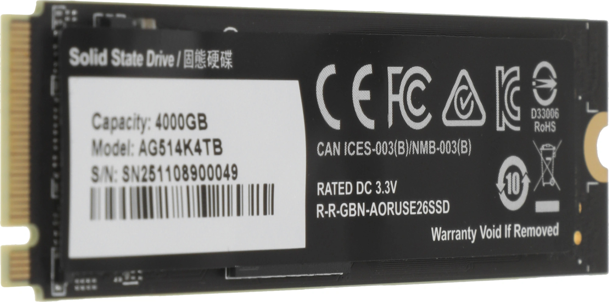 Диск SSD Gigabyte - Aorus Gen5 14000, игровой, M.2 2280, 4 ТБ, PCIe 5.0 NVMe x4, speed write-12600МБ/с read-14100МБ/с, TLC, Phison PS5026-E26, AG514K4TB