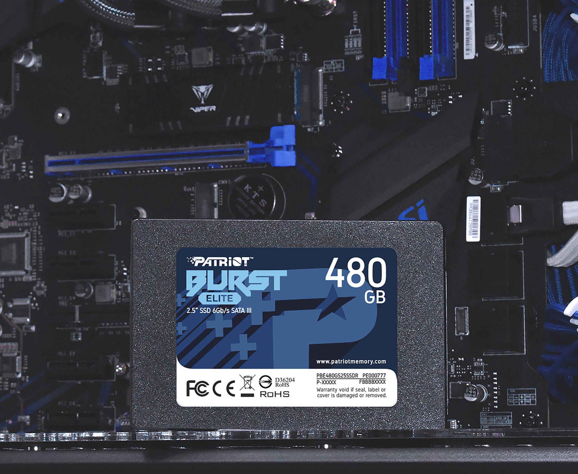 Диск SSD PATRIOT - BURST ELITE, для ноутбука, 2.5", 480 ГБ, SATA, 6 Гб/с, speed write-320МБ/с read-450МБ/с, PBE480GS25SSDR