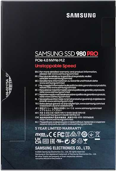 Выбрать товарыДиск SSD Samsung - 980 PRO, для ноутбука, M.2 2280, 500 ГБ, PCIe 4.0 NVMe x4, speed write-5000МБ/с read-6900МБ/с, TLC, Samsung Elpis Controller, MZ-V8P500BW