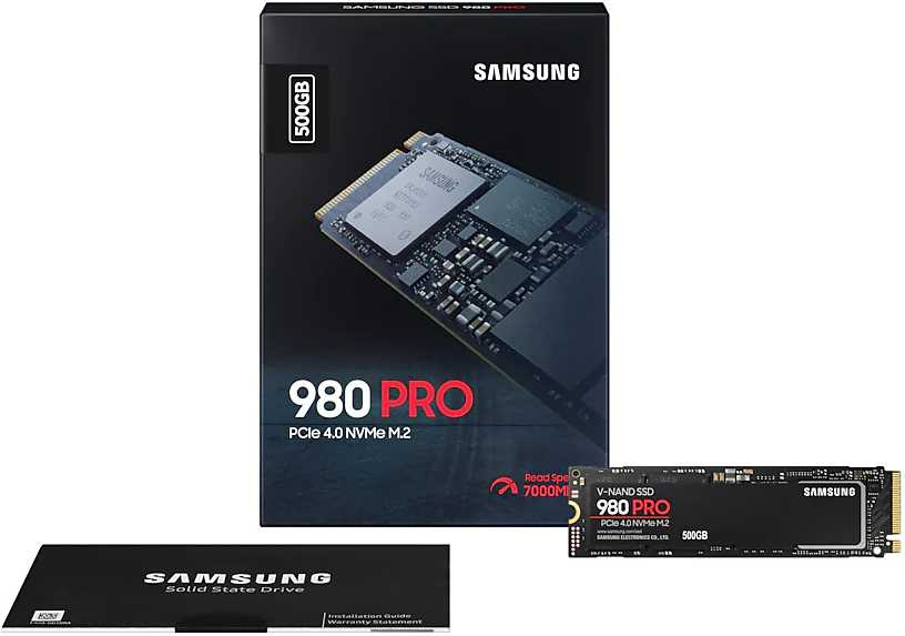 Диск SSD Samsung - 980 PRO, для ноутбука, M.2 2280, 500 ГБ, PCIe 4.0 NVMe x4, speed write-5000МБ/с read-6900МБ/с, TLC, Samsung Elpis Controller, MZ-V8P500BW