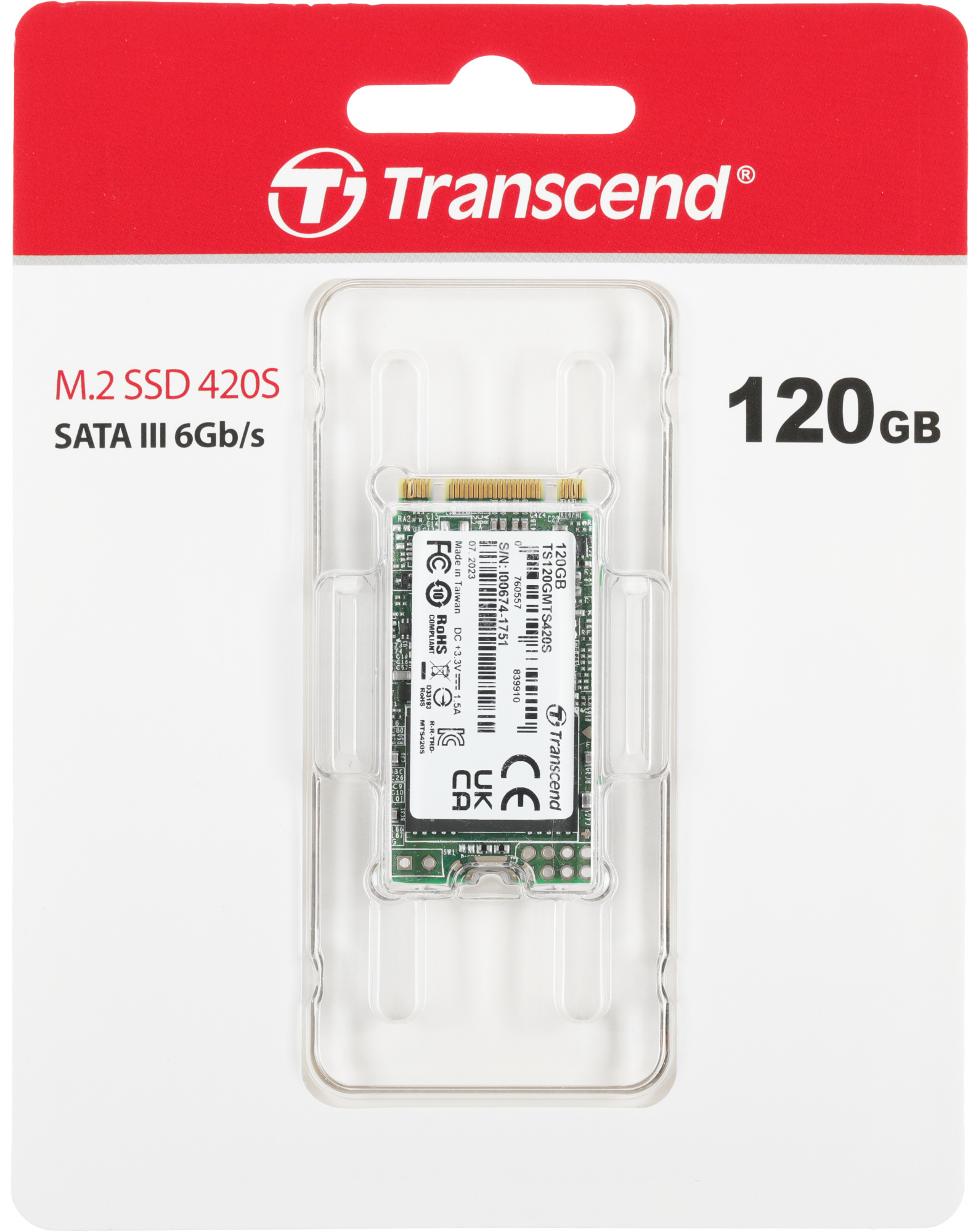Диск SSD Transcend - MTS420S, для ноутбука, M.2 2242, 120 ГБ, SATA, 6 Гб/с, speed write-350МБ/с read-500МБ/с, TLC, TS120GMTS420S