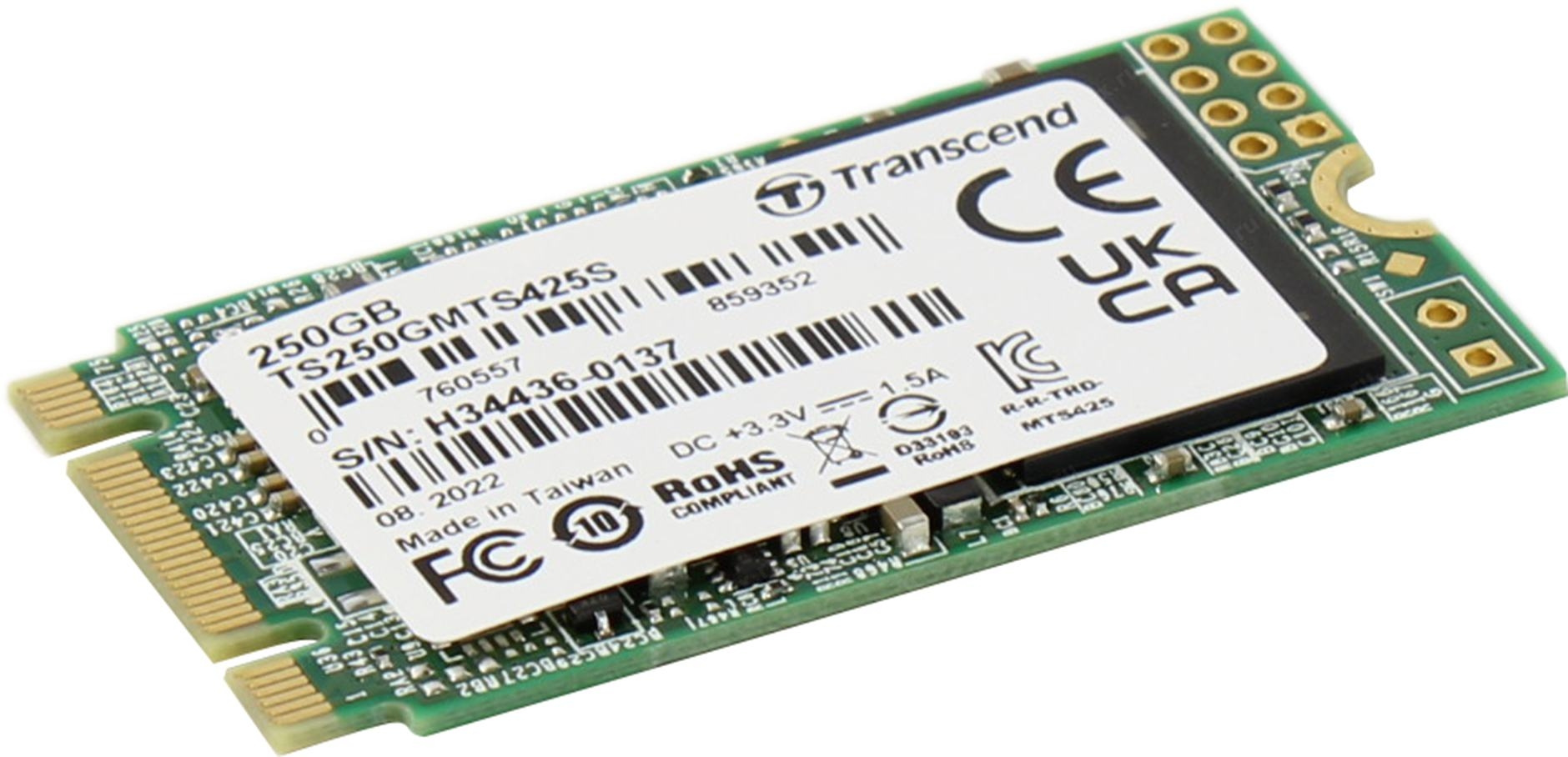 Диск SSD Transcend - MTS425S, для ноутбука, M.2 2242, 250 ГБ, SATA, 6 Гб/с, speed write-330МБ/с read-500МБ/с, TS250GMTS425S