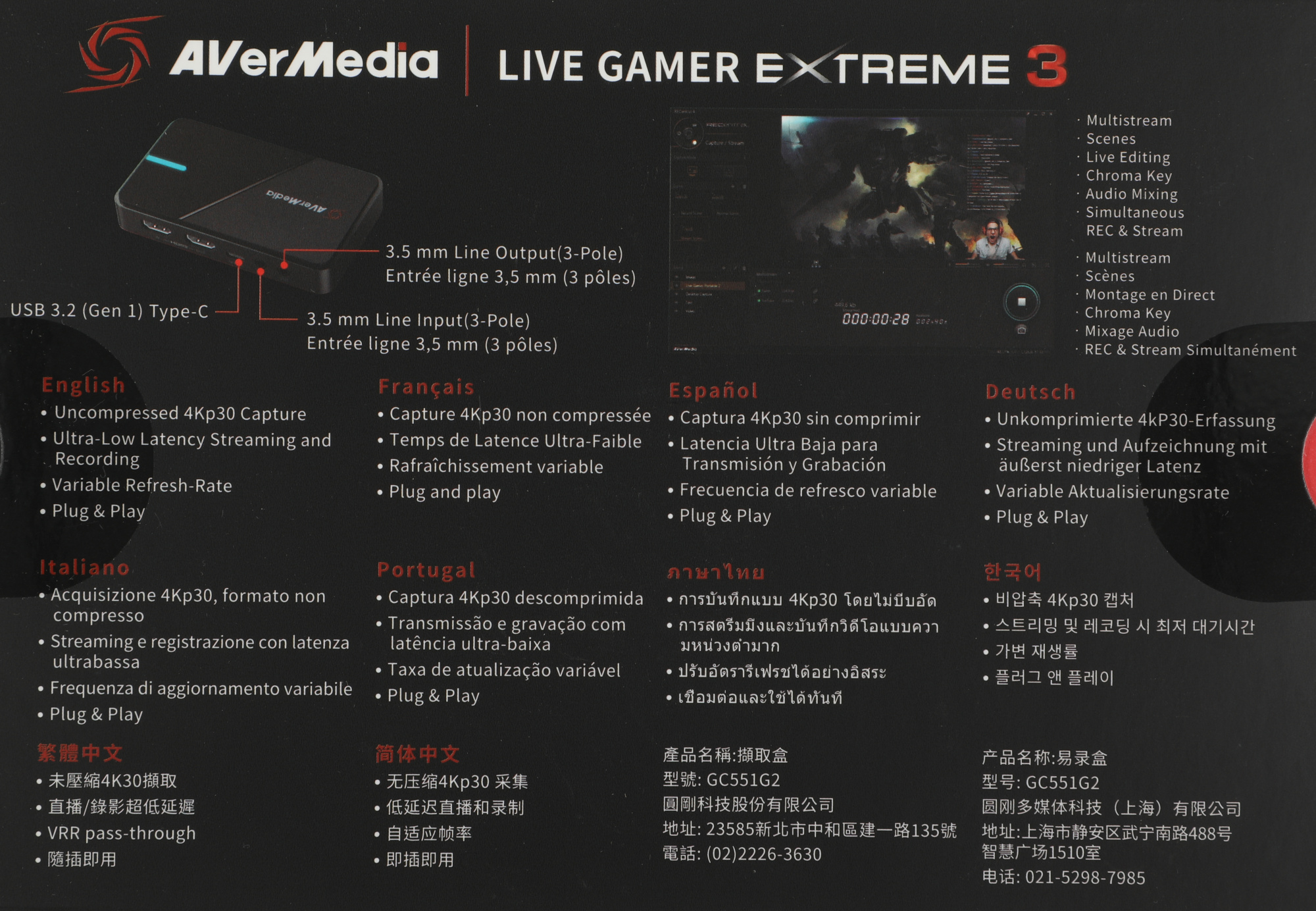 Карта видеозахвата AVerMedia, USB 3.2 Type C, 2x HDMI, max 2160p, External, LIVE GAMER EXTREME 3