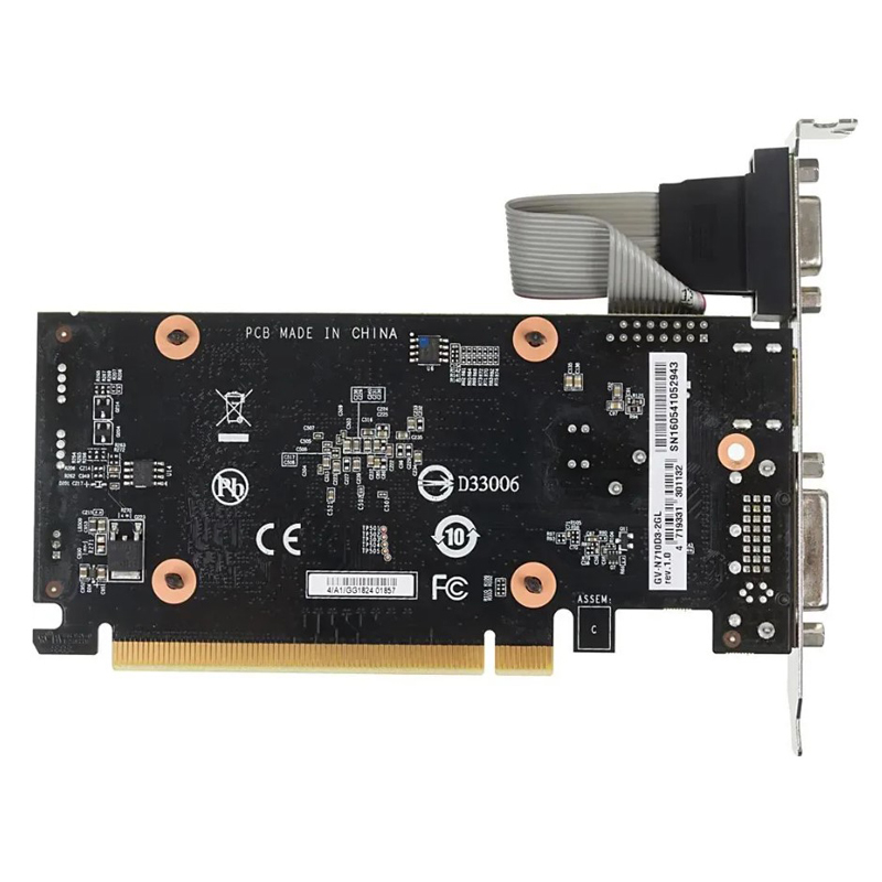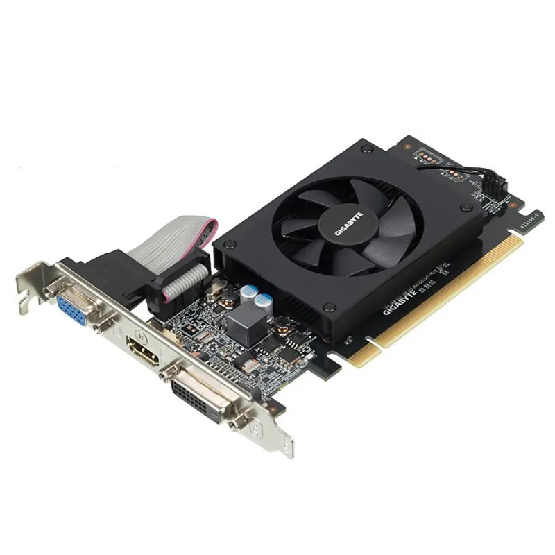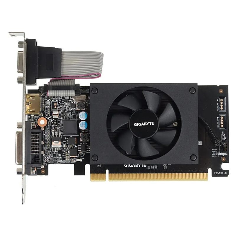 Видеокарта Gigabyte NVIDIA - GeForce GT 710, PCI-E 2.0 16x, DDR3 2GB 64bit, 1x VGA, 1x DVI-D, 1x HDMI, max 4096 x 2160, 144мм, Low Profile, GV-N710D3-2GL
