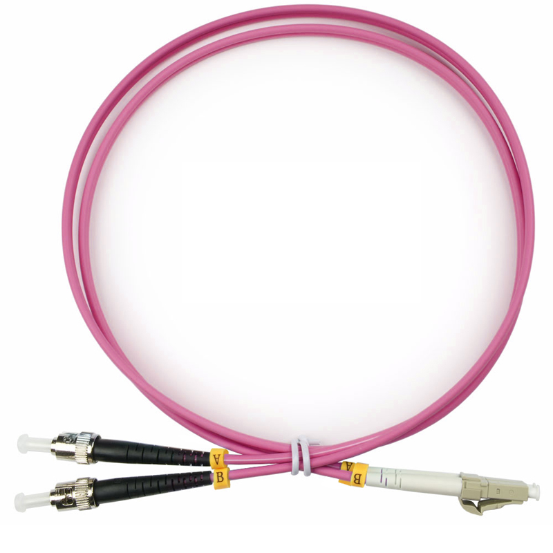 Оптический патч-корд Cabeus FOP-50-OM4-LC-ST-1,5m - с размером волокна 50/125 мкм, длиной 1,5 м, содержит разъемы LC (UPC) - ST (UPC), тип оболочки LSZH, цвет - розовый.