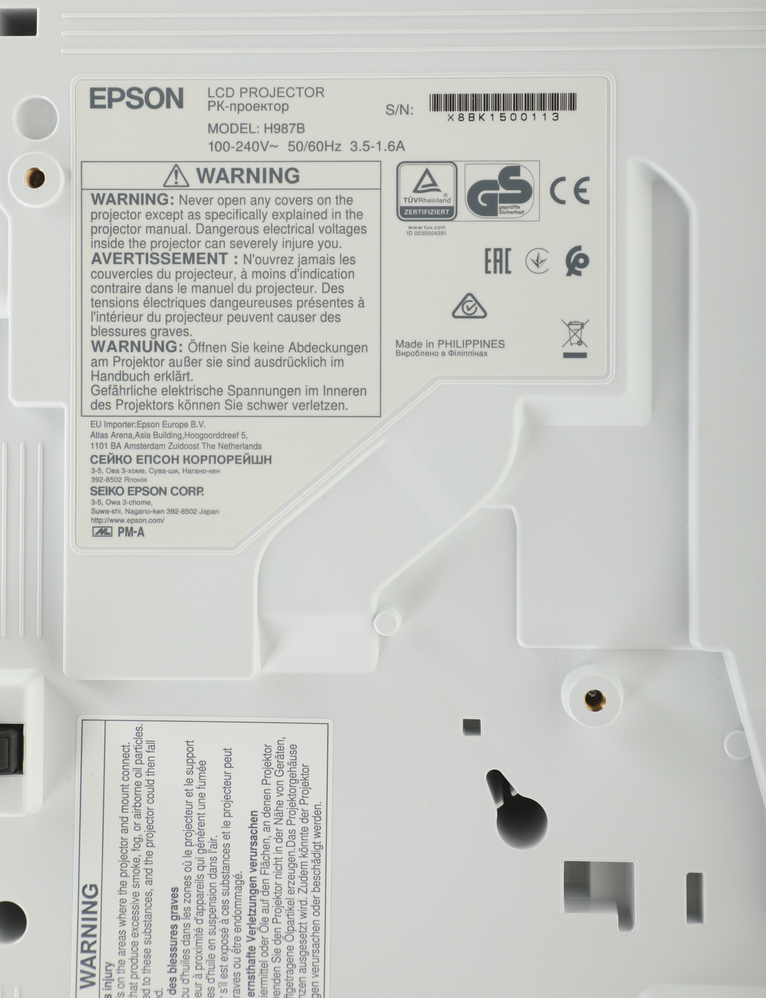 Проектор EPSON - EB-982W, 1280x800 (WXGA), 16:10, 3LCD, 4200lm, 16000:1, 2x HDMI, 2x VGA in, 1x VGA out, 2x CVBS in, 1x 2RCA audio in, 1x miniJack audio out, 2x miniJack audio in, RS-232, speakers, белый, V11H987040
