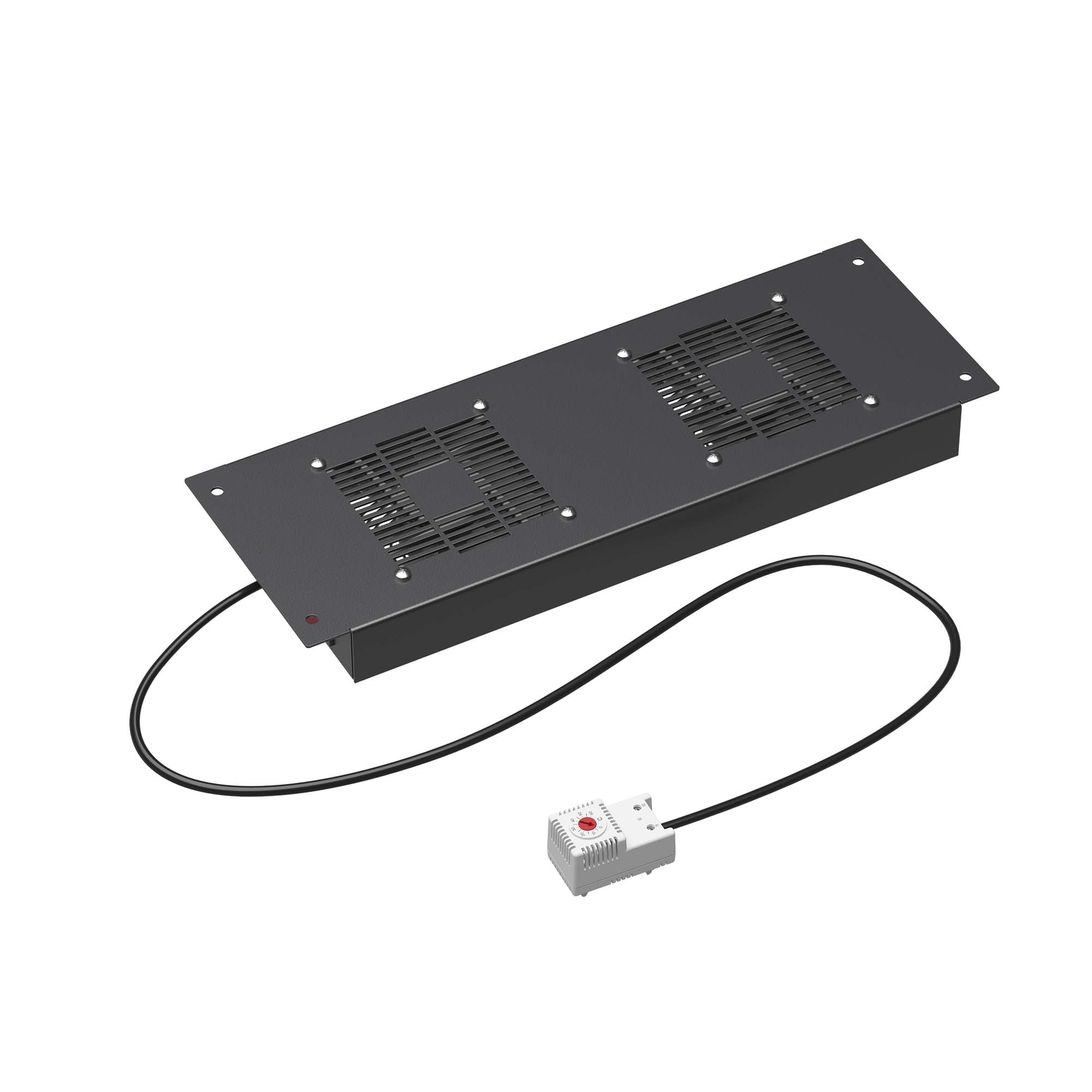DKC вентмодуль 2 вентилятора с термостатом, черный. Ставил в серверный шкаф, подключил питание, настроил срабатывание по температуре. Работает тихо, отводит тепло.