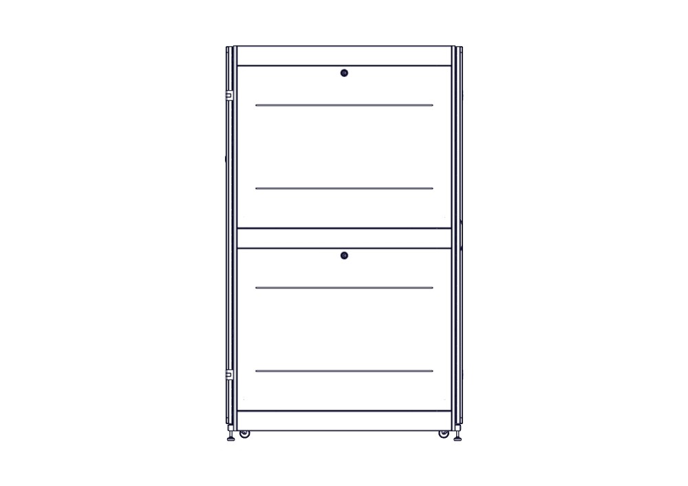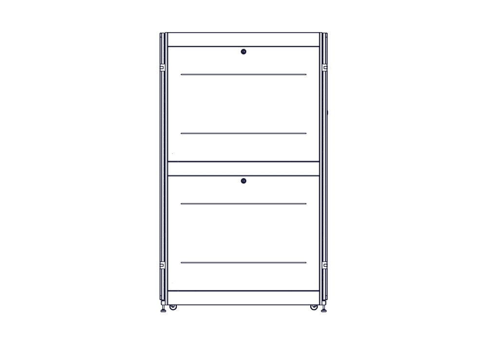 42U, еще другая версия. Продолжается серия, те же качества: выносливый металл, грамотный дизайн. Двери не трескают, шарниры прочные. Менять конфигурацию внутри легко.