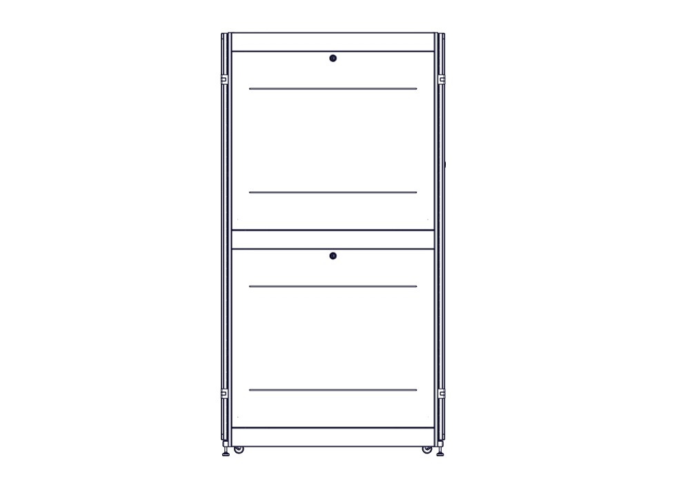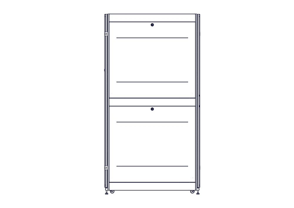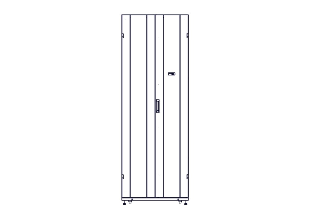 48U, самая глубокая модификация? Перфорированная дверь, толстый металл, съемные боковины. Ставил туда блейд-серверы и полноценные внешние RAID, всё умещается. Охлаждение через перфорацию, удобно.