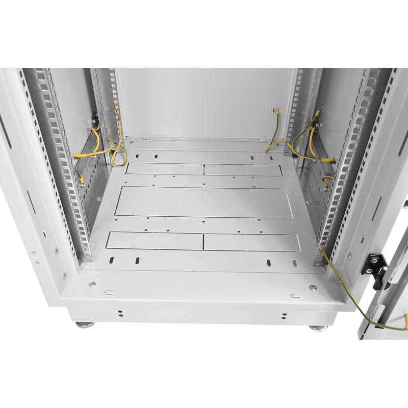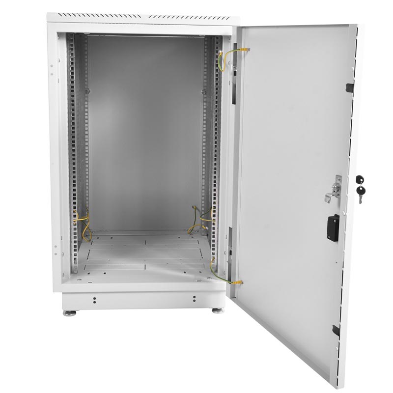 Шкаф идеально вошёл в тесное помещение. Пространства хватило на коммутаторы и блоки питания, кабели без проблем укладываются. Отверстия для прохода проводов продуманы, дверцы закрываются с замком. Металл без заусенцев, покрытие ровное, шкаф выглядит аккуратно и служит исправно.