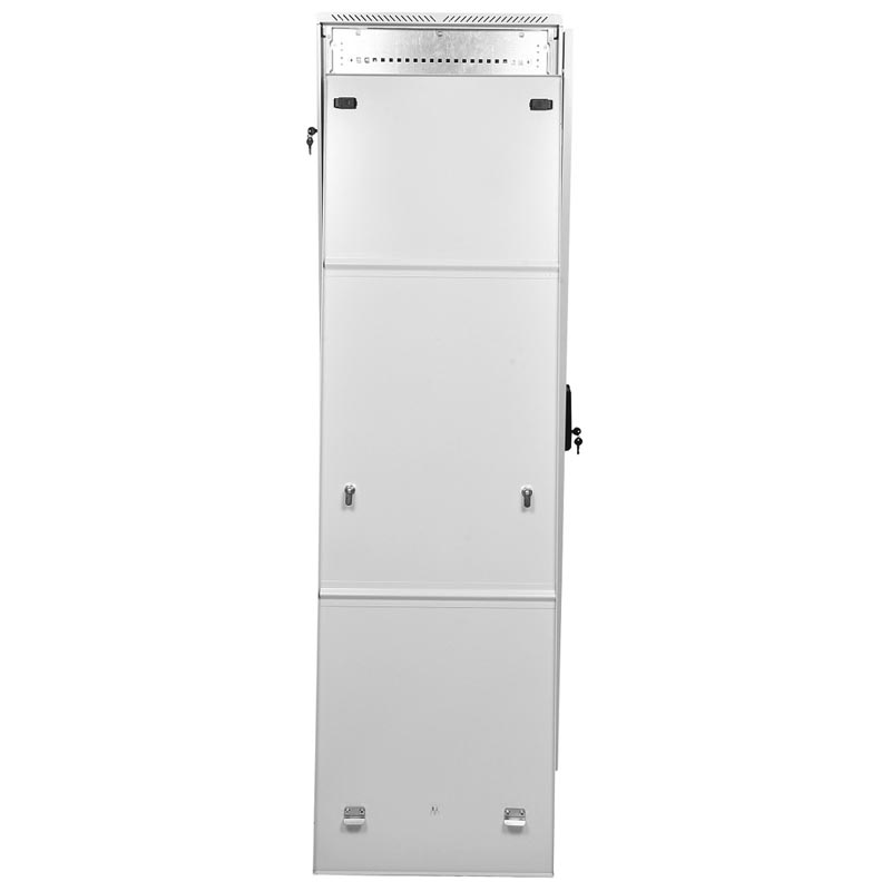 Массивный шкаф на 47 юнитов и глубину 800 мм. Пришёлся кстати для масштабного парка серверов. Уверенно стоит даже на неровном полу, а металлический каркас не даёт проседания. Боковые стенки легко снять для обслуживания.