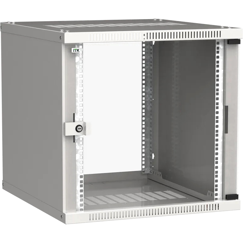 Настенный шкаф ITK - LINEA WE, 9U, высота-450мм, глубина-350 мм, ширина-550 мм, стеклянная дверь, max-50кг, IP20, цвет серый, LWE3-09U53-GF