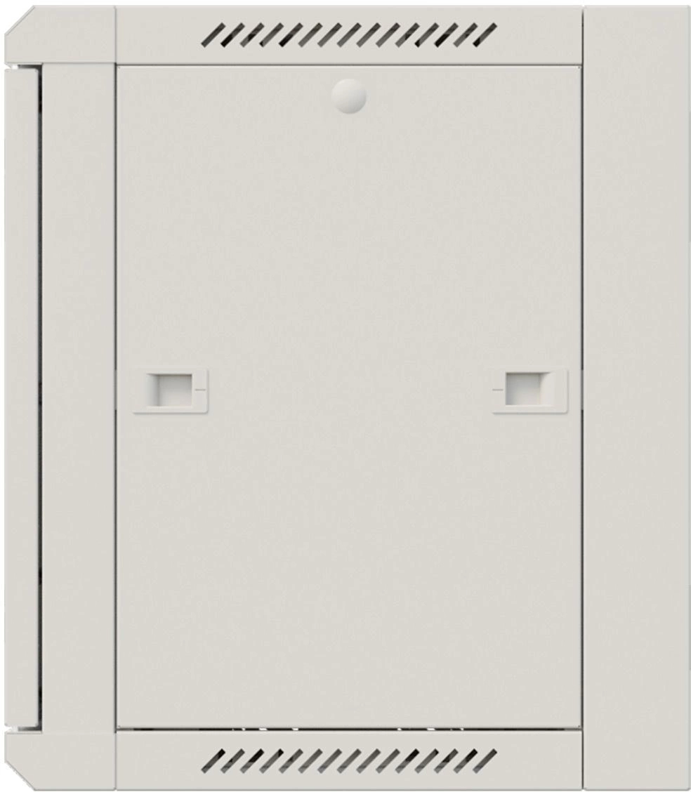 12U серого цвета, глубина 600 мм, дверца перфорированная: обеспечивает дополнительное охлаждение, замок на защелке. Удобен для IP-камер и сетевых узлов.