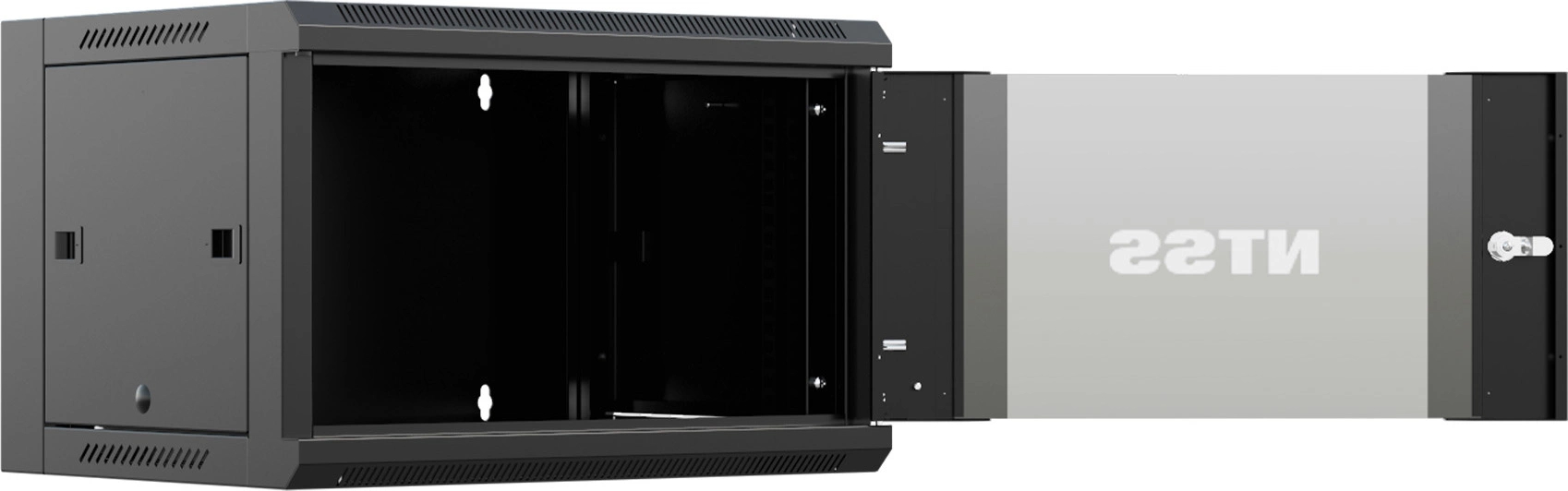 Настенный шкаф NTSS - W series, 12U, высота-635мм, глубина-600 мм, ширина-570 мм, стеклянная дверь, съемные стенки, max-60кг, полезная глубина-500мм, IP20, цвет чёрный, NTSS-W12U6060GS-BL