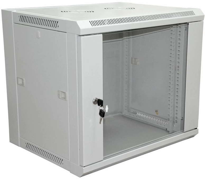 Приобрел этот настенный шкаф для организации локальной сети в небольшом офисе. Высота 6 юнитов оптимальна для размещения патч-панели, коммутатора и небольшого источника питания. Корпус выполнен из качественной стали с хорошим антикоррозийным покрытием серого цвета. Сборка не вызвала затруднений, все детали подогнаны точно, геометрия конструкции правильная. Передняя дверца со стеклом позволяет визуально контролировать состояние оборудования без открывания. Боковые стенки съемные, что значительно упрощает монтаж и обслуживание кабельных соединений. Предусмотрены удобные кабельные вводы сверху и снизу. Это практичное и недорогое решение для аккуратного размещения сетевого оборудования. Товар был доставлен в разобранном виде, упаковка плотная, все крепежные элементы были в комплекте.