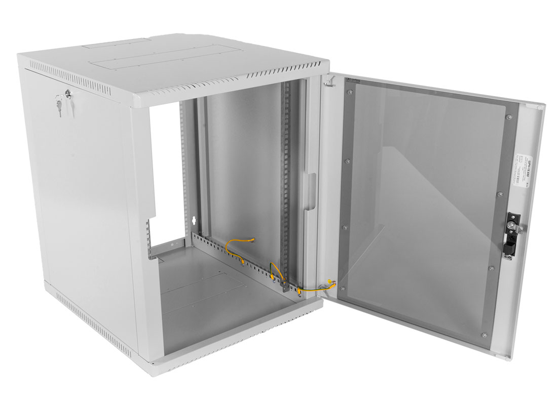 Отлично помещает свитч, маршрутизатор, блок UPS и ещё остаётся место. Вытяжные решётки присутствуют, можно при желании поставить вентилятор. Сборка нормальная, металл без трещин или кривых уголков. Прикрепил к стене, доступ через дверцу, всё аккуратно и безопасно.