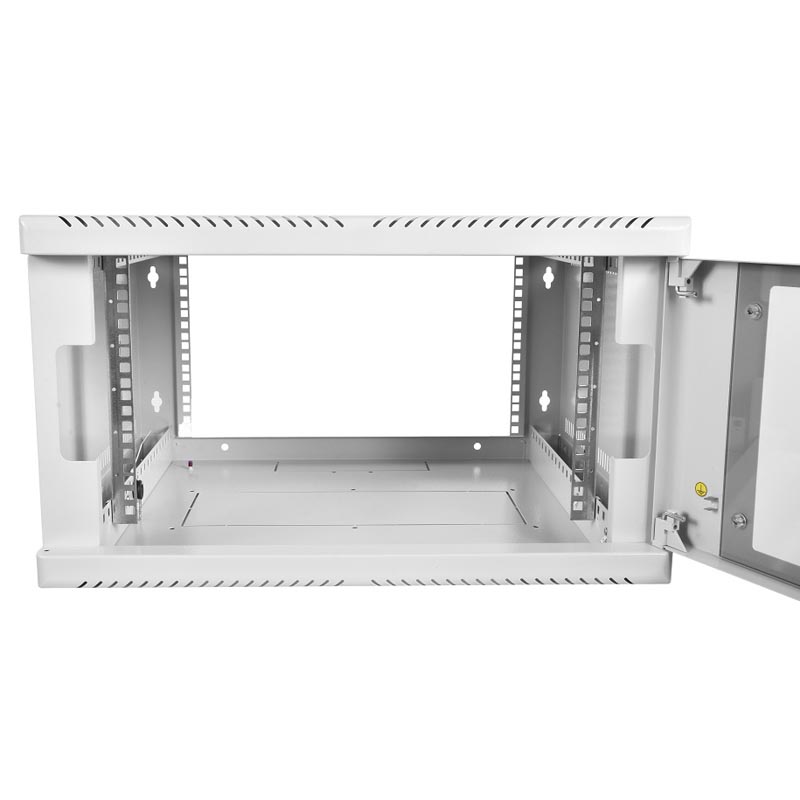 Если нужно чуть больше глубины для нестандартных девайсов, это подходящее решение. При монтаже заметил, что шкаф очень добротный, сварные швы ровные. Дверь плотно прилегает, металла хватает для крепости. Внутри можно установить полочку, всё болтами к направляющим.