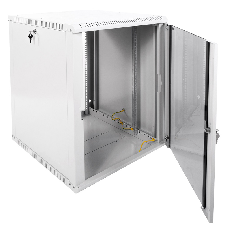 Когда нужна глубина 650 мм под длинные устройства, но хочется настенный формат, это спасение. 15 юнитов вместимости, передняя дверь стеклянная, замок надёжный. Боковые стенки снимаются, монтаж проще, прокладка кабелей сверху/снизу.