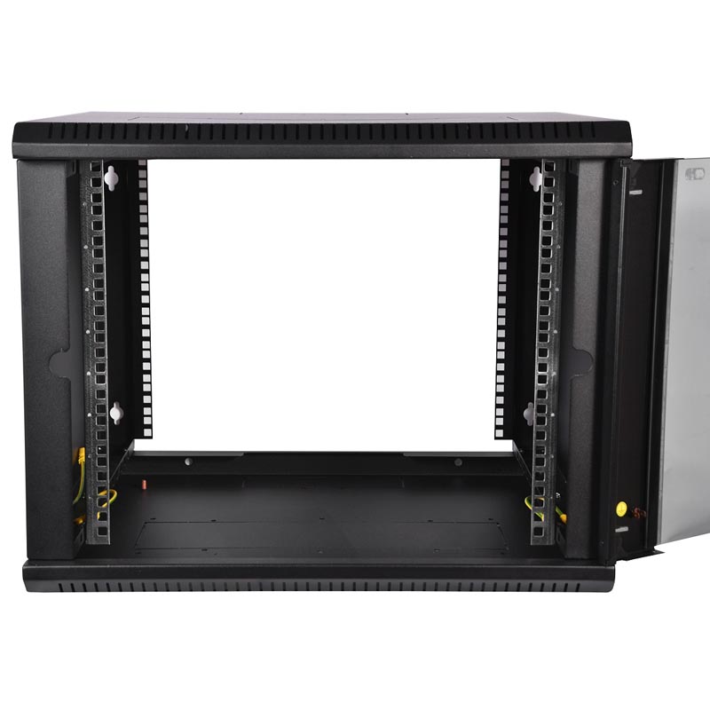 Подходит для маленького офиса: влезают пара патч-панелей и роутер. Дверь на замке, сквозь стекло видны индикаторы. Кабельные вводы вверху и внизу, ничего не мешает. Чёрный цвет универсален, металла достаточно, нет вибраций, крепёж в комплекте.