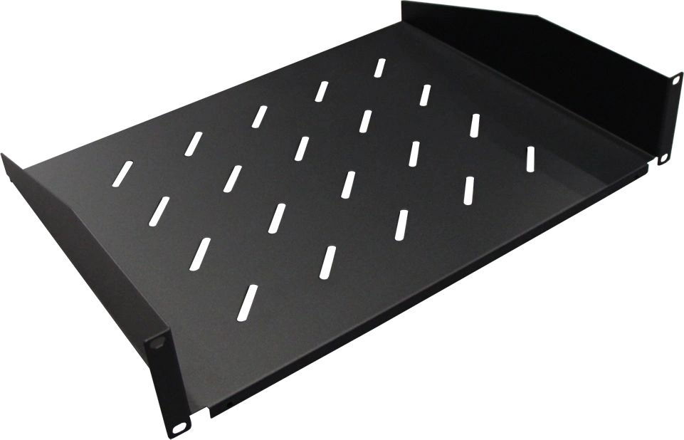 Полка глубиной 300 мм, 1U, чёрный. Монтируется в 19 стойку, выдерживает умеренный вес. Перфорация под охлаждение.