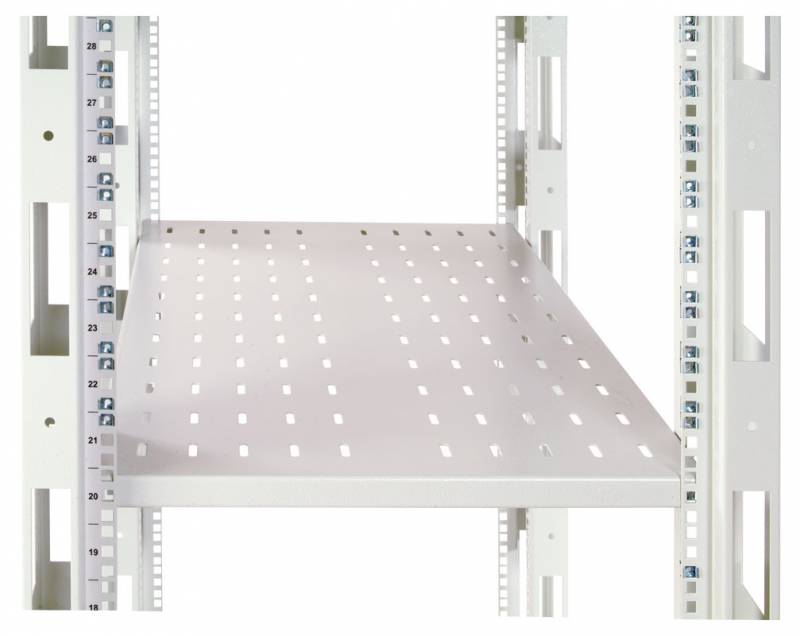Глубина 750 мм идеальна для размещения оборудования с задним доступом. Толщина металла 2.0 мм и поперечные усилители выдерживают до 100 кг. Перфорация выполнена в шахматном порядке, что улучшило вентиляцию. Совместима с крепежом 10 мм. Покрытие RAL 9005 устойчиво к истиранию. Отличное решение для монтажа в стойки 19”.