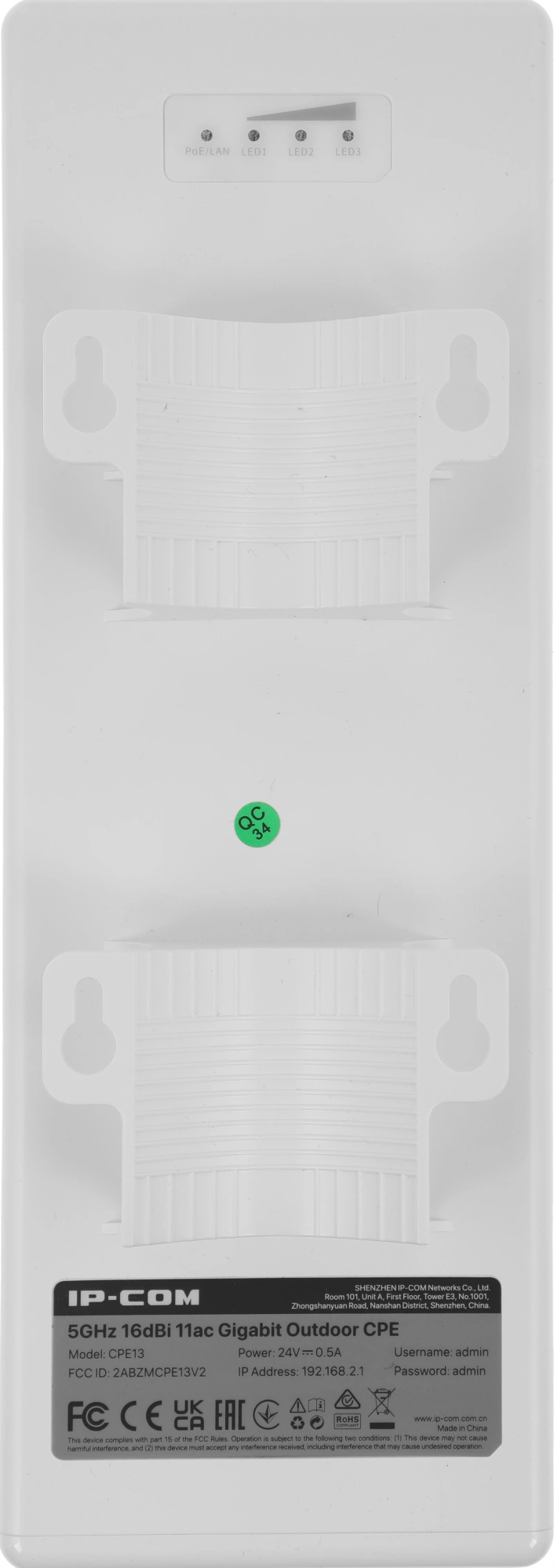 Точка доступа IP-COM - CPE13, 5 ГГц, 867Mb/s, IEEE 802.11 a/n/ac, Web, цвет белый, CPE13