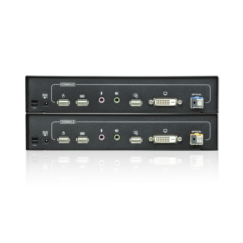 Передача DVI и USB по волоконно-оптическому кабелю до 600 м, Zero-Latency, разрешение 1920x1200. Для студий, цехов, где невозможно кинуть витую пару. Качество видео безупречно, никаких помех.