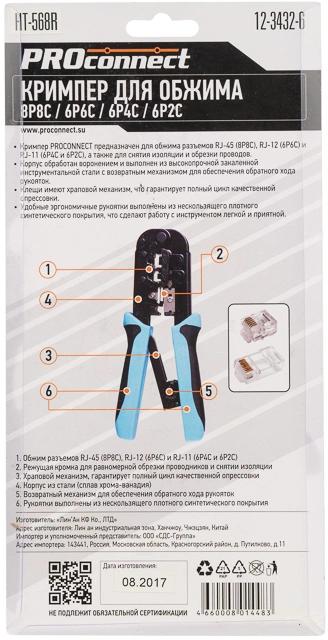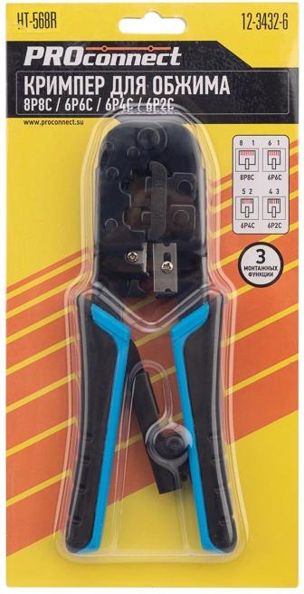 Инструмент обжимной PROconnect HT-568R 12-3432-6 для RJ-45/RJ-12/RJ-11 черный/синий, 12-3432-6