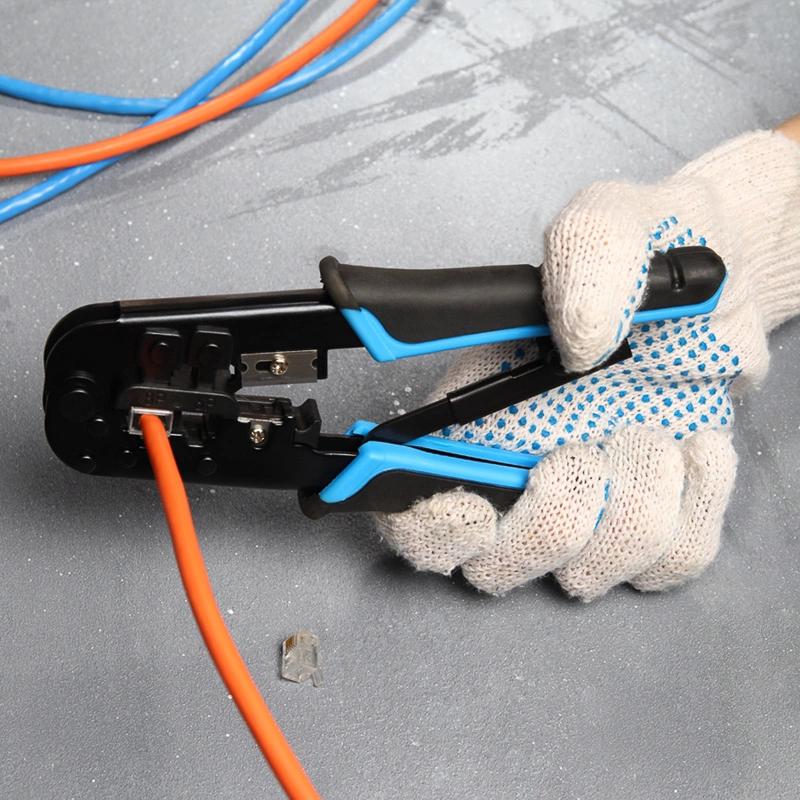 Профессиональный инструмент для работы со слаботочными системами приобретался для регулярного обслуживания сетевой инфраструктуры. Модель поддерживает обжим нескольких типов разъемов, что делает её универсальной. Качество сборки внушает доверие: люфты в шарнирах отсутствуют, все детали подогнаны плотно. Рукоятки обеспечивают хороший рычаг, усилие при обжиме распределяется правильно, рука не устает при большом количестве операций. Лезвия долго сохраняют остроту, обеспечивая ровный срез кабеля. Это прагматичный выбор для тех, кому важна надежность и долговечность инструмента в ежедневной рутине.