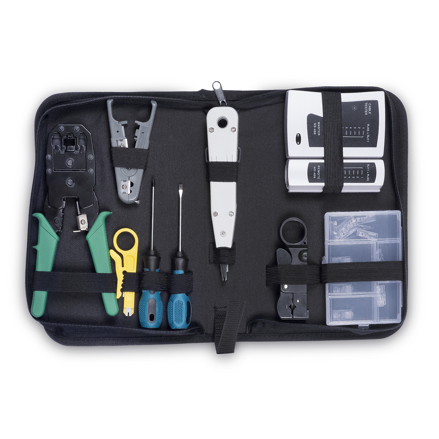 Набор инструментов Cabeus (инструмент обжимной, инструмент для заделки витой пары, зачистки, отвертки, тестер, коннекторы), HT-TK-01