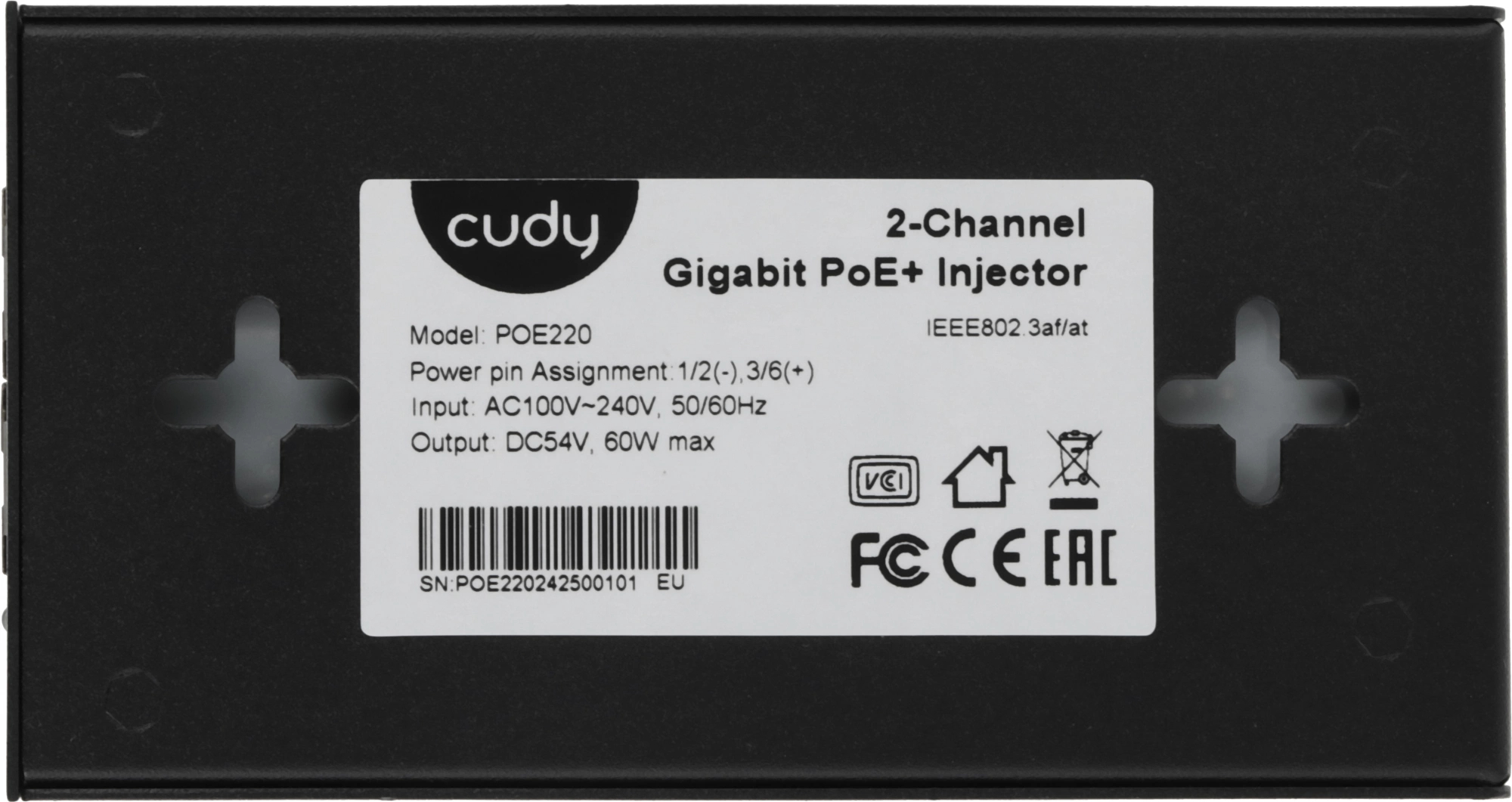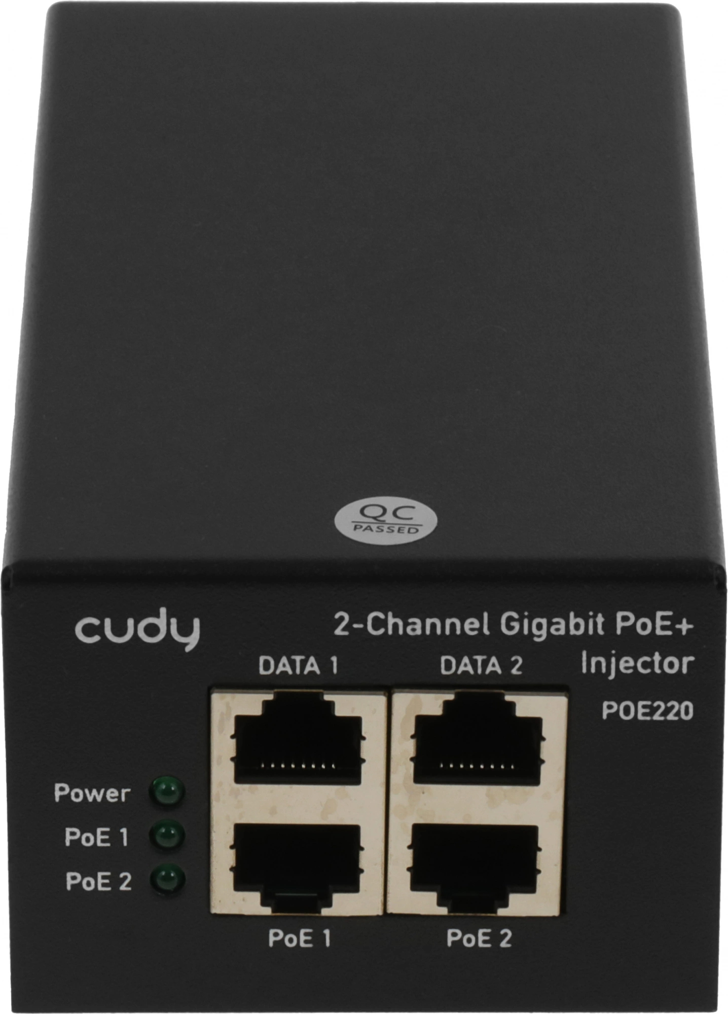 PoE-инжектор Cudy 220 Вт передаёт питание и гигабитные данные: корпус массивный, эффективное охлаждение, защита от короткого замыкания. При подключении сотен камер питание подавалось стабильно, сигнал без потерь.