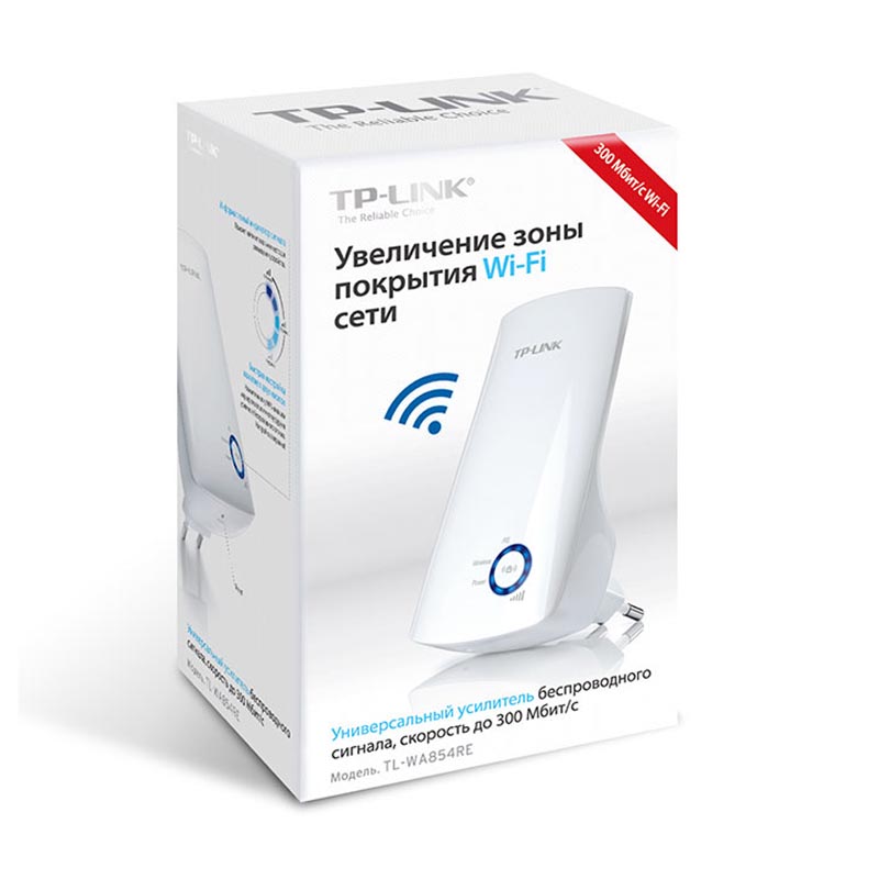 Усилитель Wi-Fi TP-Link - TL-WA854RE, 2.4 ГГц, 300Mb/s, IEEE 802.11 b/g/n, Белый, TL-WA854RE